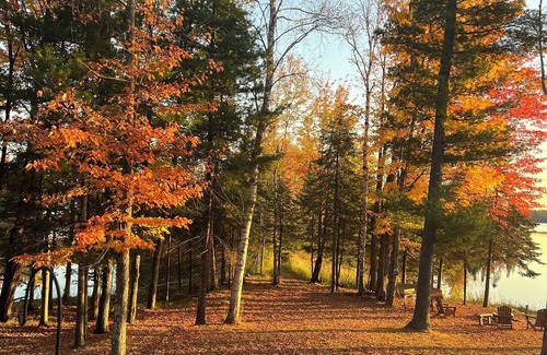 Enjoy a quick walk out to the peninsula to a beautiful picnic area. Utilize the seasonal private dock and shorefront for all of your lake day activities. Play an outdoor game in the ample grassy areas, and lounge on the sprawling balcony with a Weber gas grill to cook a delicious meal for the entire family while overlooking the lake. Of course, after a full day on the water or just relaxing, have some fun by the campfire roasting marshmallows or making s'mores under the night sky. Days full of laughter, fun, and unforgettable memories will leave you excited to return as you enjoy this wonderful slice of paradise.