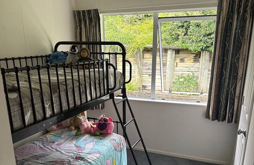 Bring the whole family to this great place with lots of room for fun.with 5.5 ha of bush an gentle stream an views of the fifth of Thames and the beach accross the road the peaceful setting of the house up a long driveway sitting on the hill with stunning views of the coromandel The firth of Thames offers some of the best snapper an kingfishing in nz.plenty of parking and the bayview hotel offers absolutely fabulous meals and a courtesy van is also available for a donation .WE ARE PET FIENDLY