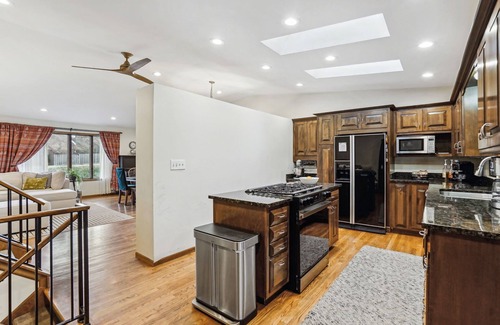 Make yourself at home in this 4-bedroom Mendota Heights retreat. This lovely house features 3 king beds, 1 queen bed, and even a crib for the little ones. Two full bathrooms and two half bathrooms will make sure all members of your group feel comfortable with enough room for self-care. Full of cozy places to lounge and play separately or together. It's always good to be able to get the needed alone time during a family vacation. No problem here with 3 living rooms and 4 spacious bedrooms, each member of your group will have what they need to enjoy your time together. Enjoy the convenience of amenities like washer and dryer, a well appointed kitchen and loads of things to do in the house like puzzles, books and games. Cozy up for a movie on the 60" TV in the lower level or play on our baby grand-equivalent piano. While new to VRBO, we have the hard-earned superhost rating of other platforms and are looking forward to helping you enjoy your stay as much as our past guests have.