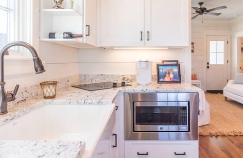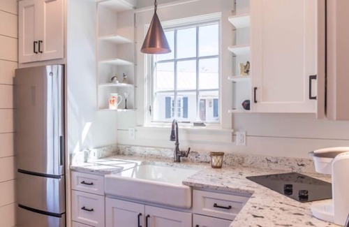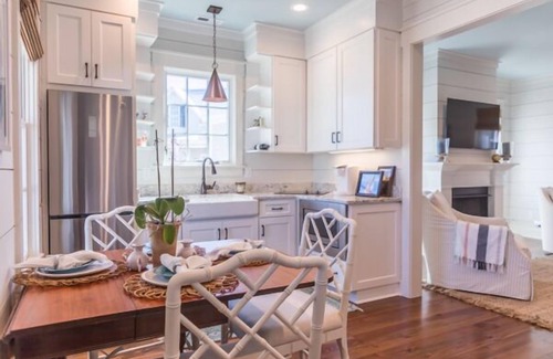 Slip Away Cottage is a two bedroom, two bath weekend getaway part of the Southern Living Inspired Community on Boathouse Row. The apron-front sink, stainless steel appliances, custom shaker-style cabinetry and gas fireplace are some of the great features. This cottage also includes king bed in the master and a queen bed in the second bedroom along with a bunk, stack-able washer and dryer in a laundry closet as well as basic cable and WiFi. Screened porch and shared fire-pit overlook the harbor view location. Keurig coffee maker for your morning joe.
