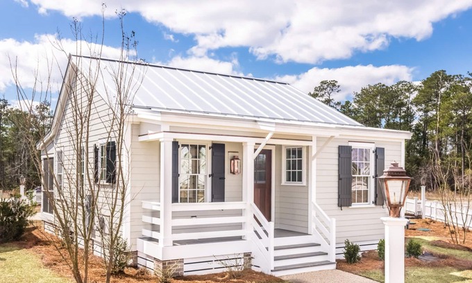 The Bunkies on Boathouse Row - designed by Historical Concepts - are nestled in a charming lakefront location within River Dunes, an award-winning master planned community that embraces gathering spaces, spectacular water views, year-round boating and outdoor living. The cottage courtyard is beautifully landscaped with classic southern favorites, shared fire pit and fantastic views of Grace Harbor.