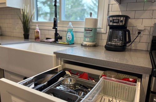 Escape to our newly renovated super cozy, 2-apartment cottage nestled in the heart of Ontario’s winter wonderland! Perfectly located just 20 minutes from Blue Mountain’s slopes, 4 minutes to the Wasaga Beach Casino, and minutes from Collingwood’s vibrant downtown. Plush, comfy couch ideal for unwinding after a day on the slopes. Three cozy beds located in the loft bedroom to comfortably sleep up to 6 guests (combine with our second apartment to host up to 10!). Sep: Entrances, bbqs & firepit