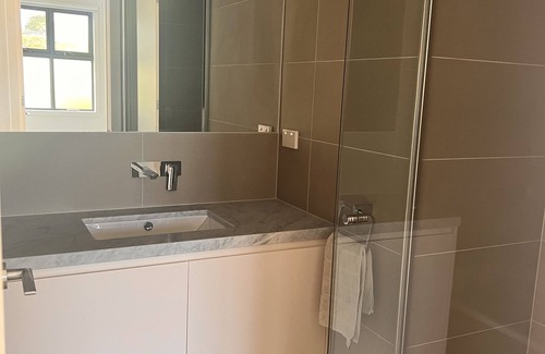 Our beautifully appointed apartment is modern with coastal touches. It has been set up to be a breath of fresh air, an escape from reality and a chance to have a luxe space of your own with all the delights of Flinders town and beach at your doorstep! Comprising the master bedroom complete with art series tv, ensuite and tucked away for peace and solitude, a further sitting room (with the option for a queen high qualiyy air bed that woukd suit additional guests or kids) as well as the open plan lounge, kitchen and dining so there is plenty of space to relax. Not to mention an additinal bathroom with relaxing bath and balcony to enjoy water glimpses! The kitchen is well appointed with Miele appliances and marble bench tops.