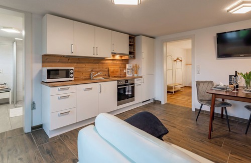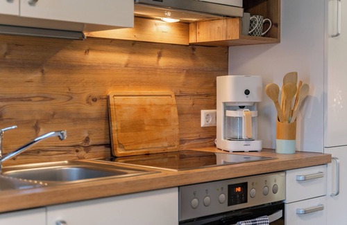 It instantly feels like a holiday upon arrival. Before you go inside, the first thing you will take in is the fantastic mountain panorama. Once inside, the small apartment is spacious enough for two people and fully equipped. A spacious bedroom for a well-deserved night's sleep and a comfortable bathroom with underfloor heating offer you plenty of comfort. The open-plan kitchen is fully equipped and the cosy living area makes this apartment perfect for 2 people