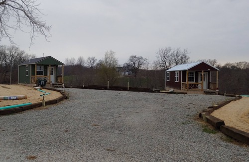 Welcome to our cozy cabin! We are just off I-29 in northwestern Missouri between St. Joseph and Platte City. Our property is 21 acres and includes a yard of 6 acres, fields and a wooded area. The cabin has a kitchenette with the necessary essentials and a small bath with shower, sink and toilet.