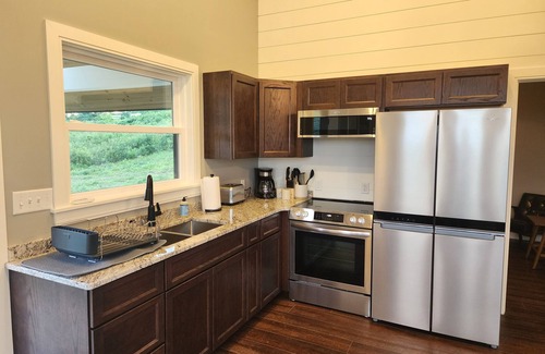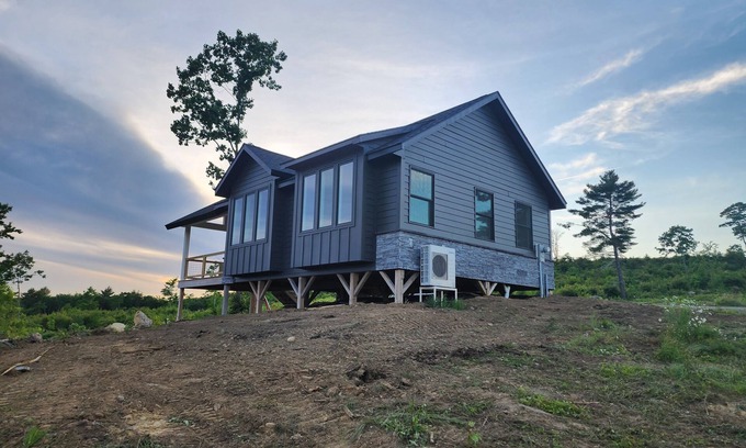 this newly built cottage house is centered on private 100 acre cow fields, overlooking the lake and surrounding hills and farms. Atv trails, hiking trails, snowmobile trails are on the farm leading to surrounding areas. Enjoy the peaceful nature and animals. Cattle grazing, deer, turkey, rabbits, eagles, hawks, and much more just outside the cottage. nearby lakes and streams for fishing or boating along with guide services can be arranged.