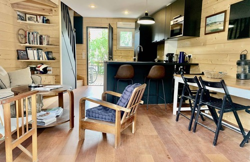 Small duplex house with garden terrace just re decorated with taste (new bathroom, new kitchen, beautiful parquet). It is a beautiful holiday space easy to live and functional. The living room overlooks a sunny terrace with trees. It consists of a kitchen equipped with its bar, a lounge and dining area. Upstairs, you will find 2 small independent bedrooms, a bathroom and a separate toilet. You have a parking space.