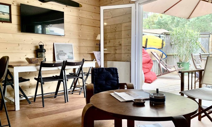The location of this duplex is a real plus: it is in a quiet residential area, itself located in the heart of the village of Canon (Lège Cap Ferret) and less than 50 meters from the beach of the Bassin d'Arcachon.