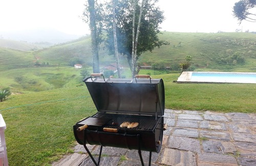 This Fazendinha is located in the valley of the cafe, having as main attraction, its historic farms from the Baroes era. Famous little princess of the cafe, the city of Vassouras with its historic center, beautiful square, and old mansions The colonial style house with panoramic views and total privacy. it has a large living room, a dining room, bar corner, pantry, fully equipped kitchen, 5 bedrooms, one of which can be transformed into a reading and games room, 3 bathrooms, a nice balcony, overlooking garden, swimming pool and with a mobile view, hammocks to rest and enjoy ... weir, contact with the life in the countryside, guests can go hiking, access to the management of the corral, horse riding (to be agreed), sport fishing .... ..the number of guests in the house cannot exceed 10 people, and the house does not offer open parties. Whenever clarification or doubts are needed, we will be available ,,,,, the hosts will not be present on the property. the city of Vassouras is 120 km from the city of Rio with easy and quick access. the access from the main road to the farmhouse And a dirt road .. that until the house is around 6oo meters logical that when it rains much more than expected, it can become more slippery more is to arrive and enjoy the place with all your welcome !!