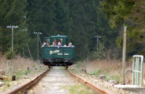 Holiday flat in the historic Hammerbrücke railway station Historic Hammerbrücke railway station with 2 holiday flats (75/120 sqm), each equipped accordingly. In the summer months you can look out of the flat into the trolley of the WEX. This occasional service stops right outside the front door. Air conditioning is not necessary due to the geographical / topographical location. The Vogtlandschanze / Vogtlanarena is approx. 8 km away. In the basement: A fully equipped holiday flat with kitchen-living room, shower and WC as well as a bedroom with 2 beds and a very spacious corridor. The entrance to this flat is independent of the large holiday flat on the upper floor. You can go out onto the platform just like in the old days and, with a bit of luck, watch the hustle and bustle on the WEX train days. The flat is approx. 75 square metres in size. Feel like the stationmaster and look out onto the platform like in the old days.