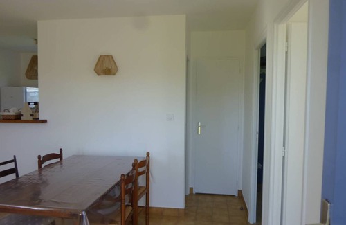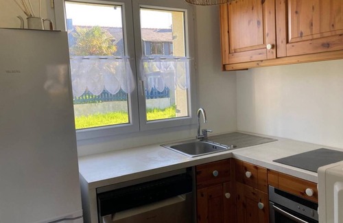 Small single-storey house for 4 people, quiet, set in the middle of an enclosed garden, composed of a living room with fitted kitchen area (freezer + dishwasher), two bedrooms (bed 160; 2 beds 90 up), shower room, WC, pantry (washing machine).
