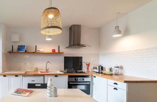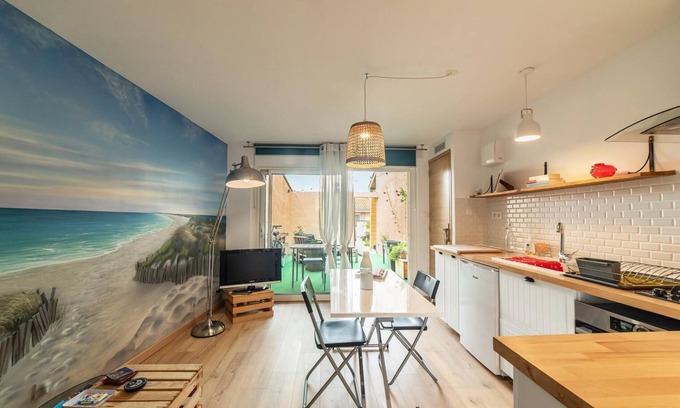 Small, quiet apartment for two people is located in Sigean. Small, quiet apartment for two people provides accommodation, featuring Kitchen, TV, Ocean View, among other amenities. This Apartment features Kitchen, TV, Ocean View, to make your stay a comfortable one.