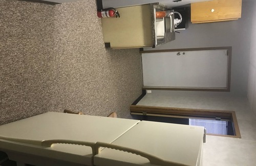 We have a 1 bedroom, 1 bath carpeted interior with living room with large TV with Netflix and WiFi.