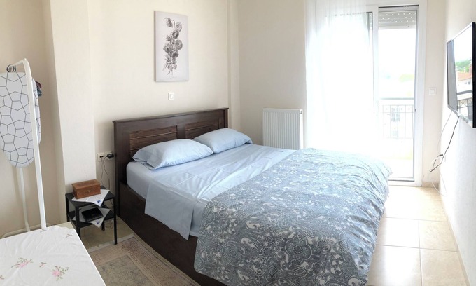 Our apartment is located in a small town on the outskirts of Thessaloniki accessible by all major highways and convenient for travelers from neighboring countries. A two bedroom apartment on the third floor of a quiet residential building. Two balconies facing east and west. 10 minutes drive into downtown and 1 hour drive away to the nearest beaches.