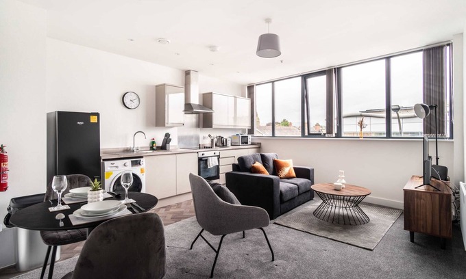 Smart 1 Bed Apartment in Central Wrexham is located in Wrexham. Smart 1 Bed Apartment in Central Wrexham provides accommodation, featuring TV, Bedding/Linens, Wellness Facilities, among other amenities. This Apartment features TV, Bedding/Linens, Wellness Facilities, to make your stay a comfortable one.