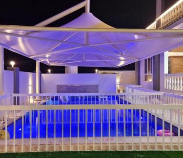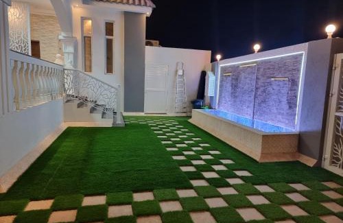 Smart Chalet:سمارت شالية is located in Salalah, just a 8-minute walk from Al Hisn Beach and 1.4 miles from Sultan Qaboos Mosque. This property offers access to a balcony, free private parking, and free Wifi. The chalet features a pool with a view with a fence, as well as a hot tub and room service. Featuring a terrace and mountain views, the spacious chalet includes 3 bedrooms, a living room, satellite flat-screen TV, an equipped kitchen, and 5 bathrooms with a walk-in shower and a hot tub. The air-conditioned unit at the property features a bidet and a dressing room. The property has an outdoor dining area. Guests can enjoy the indoor pool and garden at the chalet. Wadi Ain Sahalnoot is 14 miles from Smart Chalet:سمارت شالية. Salalah Airport is 4.3 miles from the property.