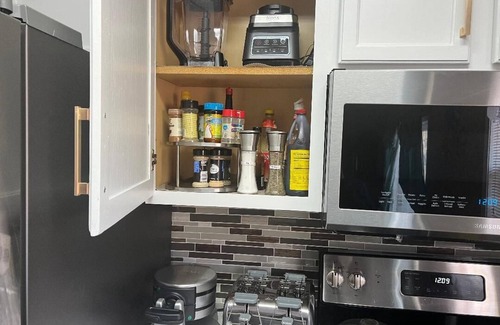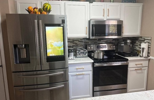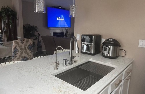 Family reunion and celebrations are encourage except for wild parties. The living room has 85” QLED with Samsung tv plus channels, Netflix, Hulu, Disney+, and ESPN +. The kitchen is well equipped to cook your own food. Air fryer, bread toaster, pressure cooker, blender, & waffle maker are readily available. What you see in the picture is what you’ll get. This place is in a quiet neighborhood and the street is a cul de sac.