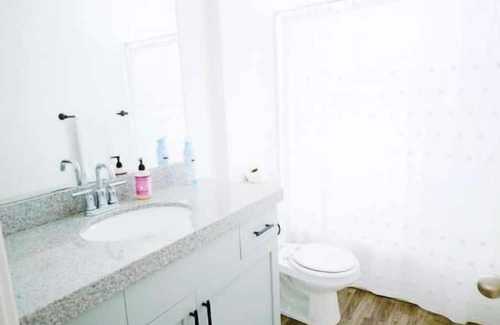 The home features a spacious full bathroom stocked with all necessities and essential toiletries, so you need to bring your own.