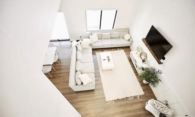 This modern and comfy getaway will leave you in awe with its carefully picked amenity list spread over two inviting stories. Stylish wooden floors extend throughout the entire home. The second floor's living area combines the living and the dining room with the kitchen, creating a contemporary open concept design space.