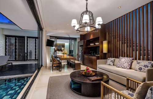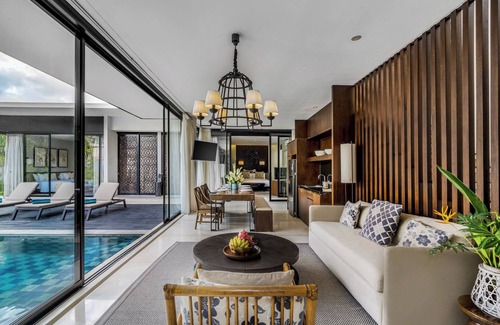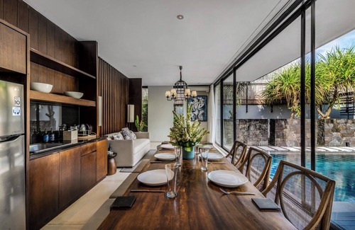 Situated amidst lush greenery, this villa duplex is a tranquil pool villa offering the ultimate setting for that luxury tropical holiday you’ve always dreamed of. Welcomed by the serenity of the pool garden, the L-shape layout consists of one two-storey structure on one side with two adjacent single storeys on the other. The floor-to-ceiling glass walls ensure ample natural light, with all rooms on the ground floor opening out to the outdoor pool. The relaxed living spaces are all designed with modern sensibilities for maximum comfort, complemented by exquisite furnishings and refined art pieces. The popular Geger Beach is a mere five-minute walk away.