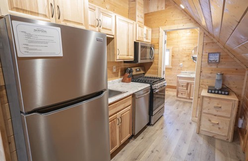 Perfect for a romantic getaway or small family stay. This studio apartment style guest house (located above the garage of a larger cabin) is a cozy stay for those on a budget. You will have access to the dock and river IF THE MAIN CABIN IS NOT RENTED.
