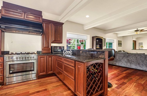 The maximum number of guests allowed is 8. No exceptions. Visitors must inquire with owners. For your security, we have placed exterior cameras at the front doorbell, side driveway, and backyard area. This is to protect the home and to prevent liability. Covering up the camera without authorization will result in terminating your stay and you will be asked to leave without any refunds. If you are not comfortable with this policy, sorry but this home may not be for you. We love our fur babies however this property does NOT allow any pets. Please review the rules and policies to make sure this is the home for you as we don't want any miscommunications.