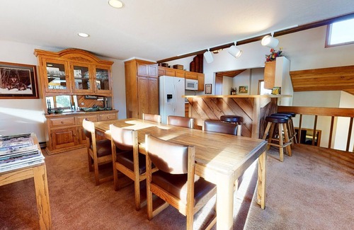 Your stay at this lovely property promises an abundance of amenities designed for comfort and convenience. Featuring three spacious bedrooms plus a loft, this condo accommodates up to ten guests. Gather around the cozy wood-burning fireplace in the living area, or whip up a delightful meal in the well-equipped kitchen that includes generous dining spaces for larger groups. Enjoy the fresh mountain air while grilling on the upper balcony, or take a peaceful stroll down to the creek from the private lower-level deck. Families will appreciate the children's sleeping arrangements and the pet-friendly policy allowing you to bring your furry companion along for the festivities.