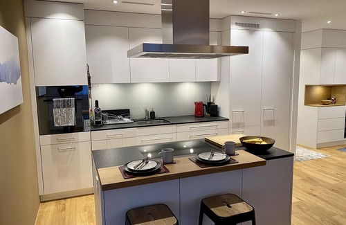 89 m2. More information by the provider: Central location in the monastery village! The apartment "SnowKaya" was opened in December 2019 and has high-quality kitchen and bathing facilities, its own washing machine and dryer, underfloor heating and an elevator that takes you to the underground car park and the ski/bicycle room. "SnowKaya" is located in the heart of the village of Engelberg, only a few meters from the ski bus stop, the supermarkets Migros & Coop and many restaurants. In winter a free bus takes you to all valley stations and to the railway station. The station can be reached on foot in a few minutes. The beautiful, first-class apartment has a modern open kitchen with oven, microwave, dishwasher and coffee machine, an open living/dining room with additional bed, TV and free Wifi. Beautiful dining area with dining table. 2 double rooms with boxspring beds. Bathroom with bathtub, WC. 1 reserved parking space available in the underground car park. Pets not allowed. NON-SMOKING APARTMENT.