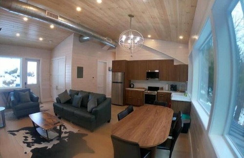 This unique place is newly constructed & fully furnished. It offers 2 Bedrooms and 1 Bath. Killington Skyship Gondola is 11 miles away. Okemo is within a 10 minute drive. Both resorts are surrounded by a full infrastructure of restaurants and shops. It is IMPORTANT to drive a 4 wheel drive vehicle in the winter as the home sits high up on the mountain.
