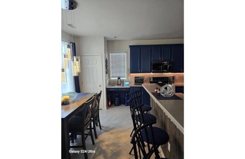 This property offers a kitchen with a perfect blend of style and functionality, featuring modern appliances, ample counter space, and freshly painted cabinets. Complete with a dining table that sits 6 and 4 bar stools. Get your morning coffee, hot water for tea with the Keurig machine. The space features two living areas, with a comfortable couch and two papasan seats to watch TV while cooking or relaxing. The other is the Entertainment room. This offers ultimate space for entertainment, fun, and relaxation. It has a shuffleboard, game boards, and a DVD player for your movie nights. Plus a half bathroom.