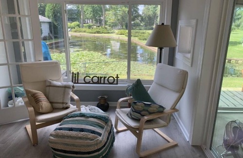 The Lil Carrot is a more sophisticated couple's retreat, with pet-friendly accommodations. The upper level is a private bedroom suite with a queen-size bed, seating area, and wall-mounted television with Apple TV. The new upper bathroom includes a multi-jet. Enjoy the under stairwell bar, canal views, and brand new kitchen with all new stainless steel appliances and gas range in this completly remodeled home. A bathtub is offered in the lower level bathroom. Washer and dryer (installed 2020), new tankless instant water heater, screened-in porch for additional seating, an outdoor dock, and outdoor shower area. Parking area provides 3 large spaces all year. Also enjoy the paddle boards, kayaks and pedal boat, pontoon available.
