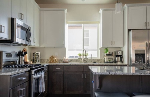 Kitchen is fully stocked with thoughtful amenitiesincluding dishes, coffee maker, coffee grinder, electric teapot, toaster, waffle iron, griddle, blender, hand mixer, crock pot, pots/pans, serving dishes, placemats, knives, grilling utensils, seasonings etc.
