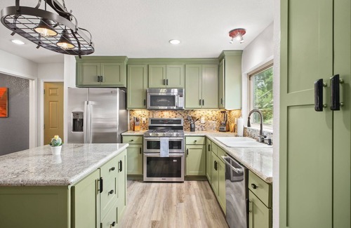 Tucked away in a quiet neighborhood just minutes from top attractions, this spacious 3-bedroom, 2-bathroom home comfortably accommodates up to 12 guests—perfect for family vacations, group trips, or weekend escapes with friends!