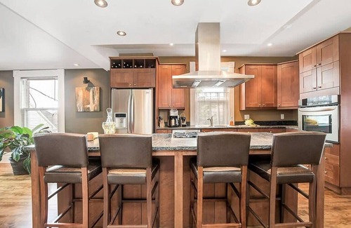 This gorgeous, newly renovated heritage home has a master bedroom loft encompassing the entire top floor with soaring ceilings and wide open space. The main floor has a second bedroom, living room with gas fireplace, den with TV, dining room and full executive kitchen with tons of space for cooking and eating. Huge private back patio with BBQ and comfy furniture for lounging and dining.
