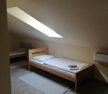 Sobe Gondola Sotin in Sotin provides accommodations with a garden and a bar. This apartment offers free private parking and private check-in and check-out. The accommodation provides a mini-market and bicycle parking for guests. At the apartment complex, units are fitted with a desk, a flat-screen TV, a private bathroom, bed linen, and towels. Each unit includes air conditioning, and some units at the apartment complex have a terrace. The rooms are equipped with heating facilities. À la carte and continental breakfast options with local specialities, fresh pastries, and fruit are available. Guests may eat at the on-site traditional restaurant, which is open for dinner and lunch. For guests with children, the apartment features outdoor play equipment and a baby safety gate. The apartment has a picnic area where you can spend the day outdoors. Museum of Slavonia is 28 miles from Sobe Gondola Sotin, while Museum Of Fine Arts in Osijek is 29 miles from the property. Osijek Airport is 17 miles away.