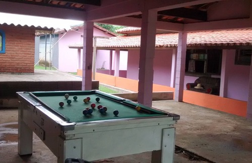 3 rooms, 2 bathrooms, living room, kitchen, laundry, internal space for 30 cars, covered garage for 4 cars, lawn, swing, doll's house, swimming pool, pool table, ping-pong table orchard with several fruits, vegetable garden, garden, near fishing, restaurants, waterfalls, church, market, shop, is 1 km from the highway Captain Barduíno, and 7 km from downtown relief, with beautiful landscape, with accommodation of up to 18 people, place with tranquility and sossêgo to relax with family and friends. We accept pets with security.