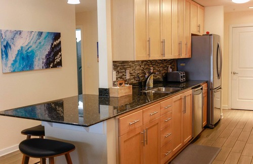 4) There is free parking for 2 vehicles in the parking garage. Please park one vehicle in the unit’s assigned parking space in Building A, conveniently attached to the condo. The second vehicle may be parked in any unmarked space. Please ensure permits are displayed at all times, as towing is strictly enforced at your expense. No parking is available anywhere else in the development. If any additional parking spaces are needed outside of the two spots given there is overflow parking located next door at Little Island Park.