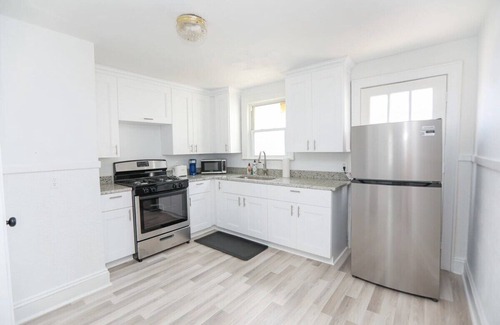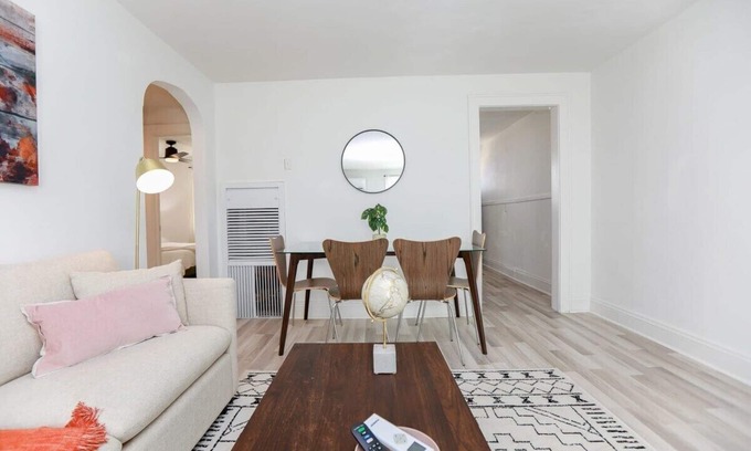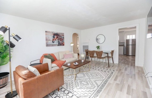 50 feet and toes are in the sand through private beach access! Sojourn welcomes you to this gorgeous 2 bedroom, 1 bath beach apartment, 1950's building but newly appointed apartment.. The apartment was partially renovated in the summer of 2021, a new kitchen and bathroom, with furnishings from Article, Crate & Barrel and West Elm. This home sleeps 4 with 2 fantastic queen beds, TV's in every room, feather duvets and pillows, a fully appointed kitchen, giga blast wifi We include free Netflix and Hulu for every tv.