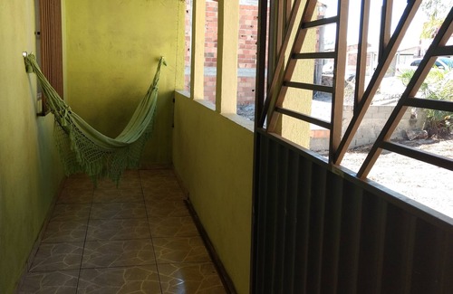 Beach house 5 minutes from the beach with great balcony, hammock, table with 6 chairs. kitchen with stove, refrigerator, cupboard and utensils. Living room with smart TV, sofa 2 and 3 seats, 1 bedroom with 3 single beds, 1 fan, plus a bedroom with a double bed and a bibox, 1 fan. Service balcony with washbasins. Garage with capacity for 2 cars. Residence close to the best red crown beaches, Axé Moa, Toatoa, Barramares and others.