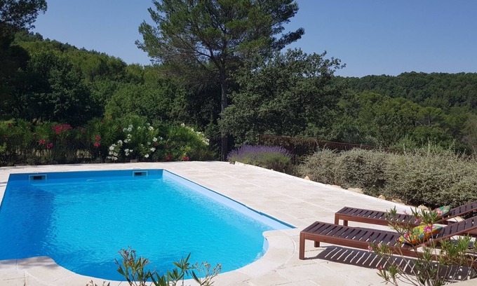 Within a property of one hectare and a half planted with many olive trees and truffle oaks, the cottage has an area of about 80 m² and is composed of a large living-dining room with 2 sofas including a convertible, TV, pellet fireplace in Rognes stone, fitted kitchen (oven, fridge, barbecue, microwave, washing machine, nespresso and filter coffee maker), 2 bedrooms, one with shower room (master bedroom), Italian shower (and hair dryer), a 2nd bathroom with WC, a desk / play corner with wifi internet, desk and, if necessary, cot available. A large terrace overlooking the private garden. Private parking.Loan of petanque balls, soccer field, badminton ...