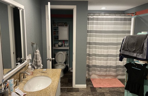4 bedroom, 1 bath, full kitchen, laundry and all household amenities available to use.