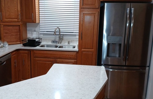 Your Toledo adventure begins at this solar-powered 3-bedroom house. With 3 queen beds, 1 full bed, 3 sofa sleepers, this cozy retreat offers a large living room with a woodburning fireplace, perfect for unwinding after a day of exploring. There are televisions in each bedroom, a 70 inch TV in the livingroom and a 55 inch TV in the kitchen/dining area. All the large TVs are on swivel mounts. Enjoy the convenience of a washing machine, dryer, laundry detergent WiFi, AC, air purifier and dishwasher during your stay. The 2 bathrooms come equipped with a hairdryer and a shower. Park your vehicles safely in the private driveway. The house has a large deck with plenty of seating, umbrella tables and a charcoal grill. The yard is large and has a firepit for your use. The backyard shed is available to store any motorcycles or bicycles you may have. You're sure to make fantastic memories with a stay at our place.