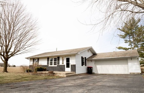 Cozy ranch about 5.5 miles from Purdue University, conveniently located minutes from Coyote Crossing golf course, peaceful backyard with a firepit. Family friendly 2 bedroom house with an updated bathroom. Fully stocked with washer and dryer. Wifi available with Roku. 2 car garage