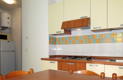 3-room apartment 40 m2. Bright, practical furnishings: living/sleeping room with 1 sofabed, dining table, kitchen corner and TV. Exit to the balcony, to the terrace. 1 double bedroom. 1 room with 2 beds. Open kitchen (Gas stove, 4 gas rings, freezer). Shower/WC. Air-conditioning, forced-air heating. Heating not available in all rooms. Balcony or terrace, patio. Terrace furniture. Facilities: baby cot. Internet (WiFi, extra). Parking (1 car) at the house. Maximum 1 pet/ dog allowed. Please note: Instead of 1 sofabed in living/sleeping room and 1 twin room, you may also find 1 bedroom with single bed and 1 x 2 bunk beds. IT029040C2KVLIHWMR