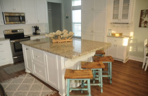 Your Solmate at the Beach comes equipped with a variety of amenities that cater to both comfort and entertainment. The open family room features a large dining island and Smart TVs for streaming your favorite shows or movies. Enjoy quality time together playing board games or watching films from the small selection provided. The well-appointed kitchen allows for effortless meal prep, while the downstairs Tiki Bar and firepit create an ideal setting for evening gatherings. You will also have access to high-speed internet, making it easy to share your special moments with loved ones who couldn’t attend.