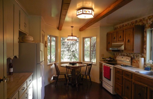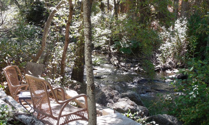 Stay here and relax to the sound & sparkle of the creek. The home is surrounded by the Plumas National Forest. It is also one of the most economical places to stay in town, for this is a town where a spartan motel room costs about $90.