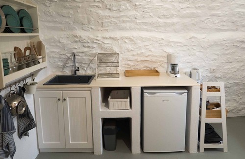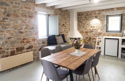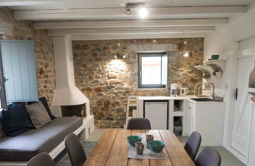 The floors are connected with a small stone internal staircase. The apartment can accommodate three people in total.