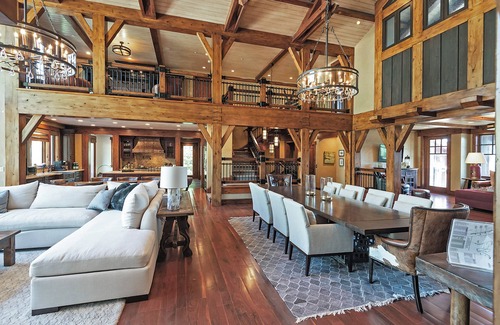 - Stunning Gathering Spaces: The grand great room features vaulted ceilings and large windows, providing a perfect backdrop for gatherings, celebrations, and intimate moments amidst the majestic mountain scenery.