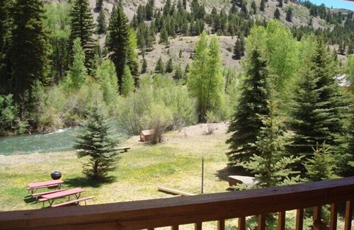 This cabin was just remodeled from the ground up in 2010 and is wonderful both inside and out. This is a duplex with two decks...an upper deck and lower deck for you to enjoy the view of the river with a grassy area between the cabin and river. The cabin has two bedrooms upstairs with two king sized beds in one room and a queen bed in the other as well as a large full bathroom. Downstairs has a large living/dining area, full kitchen as well as a king sized bed and full bathroom. There are also flat screen TVs in every room for your enjoyment as well as free wifi. You can also bring your furry friends here as this cabin is pet friendly. Walk to town from this cabin and enjoy an ice cream, lunch or dinner, some shopping or maybe a band as it is only one mile from downtown Lake City. There is also a firepit down by the river to enjoy your evenings after a full day in the mountains.
