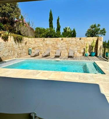Providing a garden, Somptueuse villa d’architecte avec vue mer offers accommodations in Belvédère. This property offers a private pool, free Wifi, and free private parking. There's a restaurant. Offering a terrace with garden views, this villa also has a cable flat-screen TV, a well-equipped kitchen with a dishwasher, an oven, and a microwave, as well as 5 bathrooms. For added privacy, the accommodation features a private entrance. A car rental service is available at the villa. Campomoro Beach is a 17-minute walk from Somptueuse villa d’architecte avec vue mer, while Propriano Port is 12 miles away. Figari-Sud Corse Airport is 34 miles from the property.